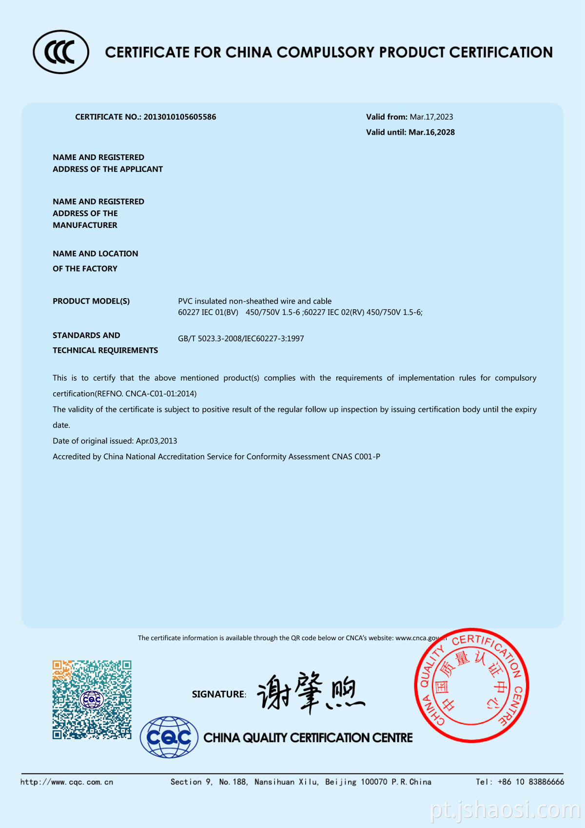 Certificação: UL,CCC,CE,ISO9001:2015